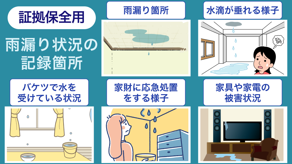 - 証拠保全!写真や動画での雨漏り状況の記録