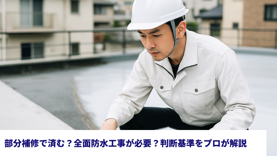 部分的な補修で対応できるケースもあれば、全面的な防水工事が必要になるケースもあります。