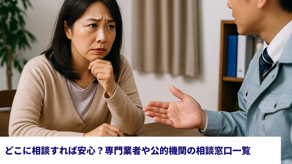 - 相談時に用意すると良いもの: 契約書、見積書、業者とのやり取りのメモ、写真など