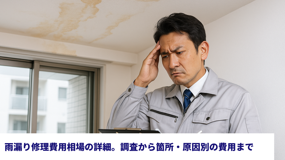 マンションの雨漏り修理費用は、まず原因を調べる調査費用と、実際の修理工事費用がかかり、被害の場所や広さによって金額が大きく変わります。