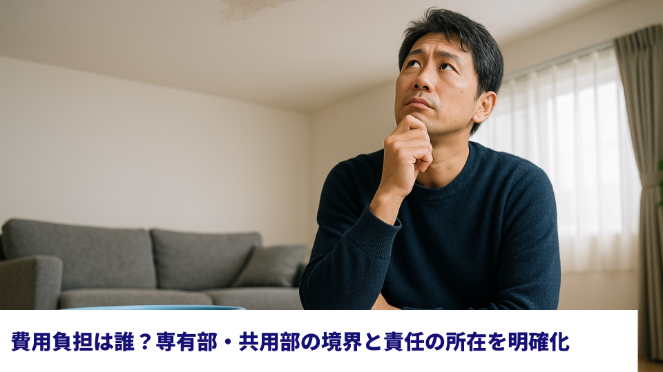 マンションで突然の雨漏り。まず頭に浮かぶのは「修理にいくらかかるの?」「その費用は誰が払うの?」という大きな不安ではないでしょうか。