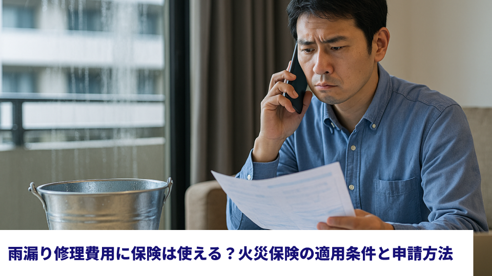 雨漏りの原因によっては、あなたが加入している火災保険や、マンションの管理組合が加入している共用部分の保険を使って修理費用をカバーできることがあります。