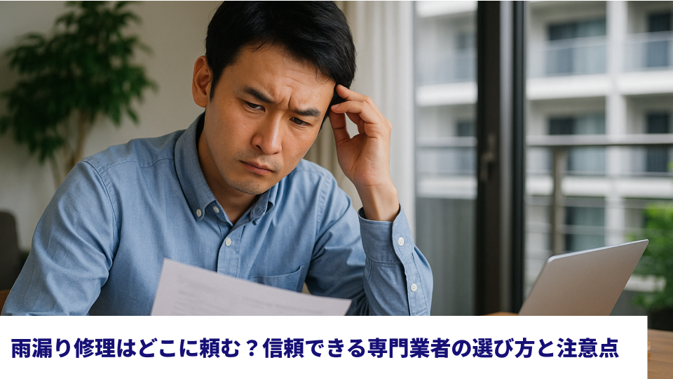 この記事を最後までお読みいただくことで、マンションの雨漏り修理にかかる費用の全体像と、誰がどのように費用を負担するのかが具体的に理解でき、応急処置から信頼できる業者の選定、保険の活用方法まで、落ち着いて適切な行動を取るための道筋が見えるようになるでしょう。