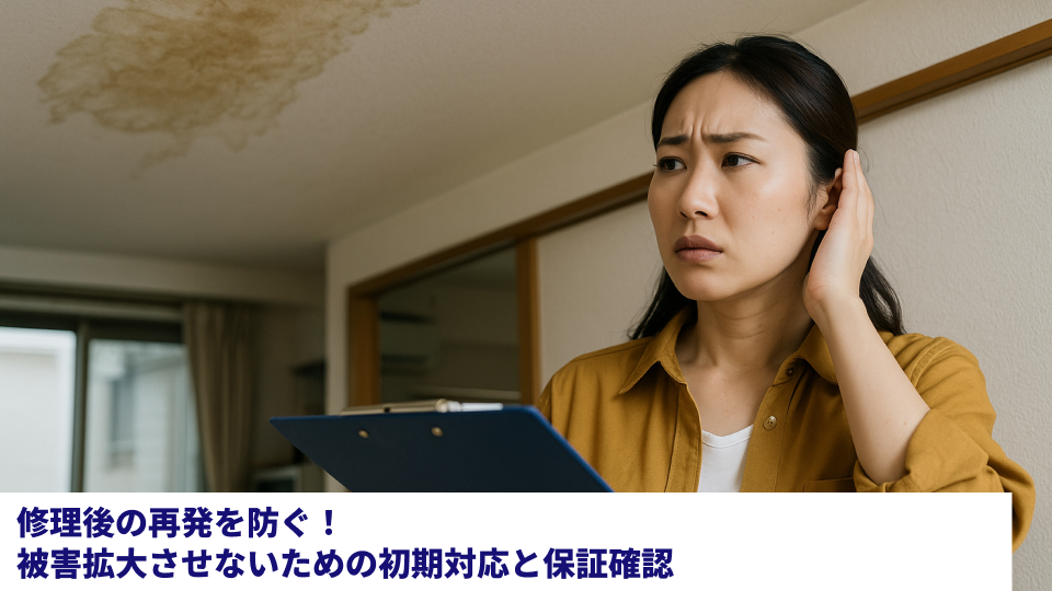 原因の特定が難しい場合や、当事者間の話し合いがこじれてしまいそうな場合は、早めに管理会社や専門家(弁護士など)に相談することをおすすめします。