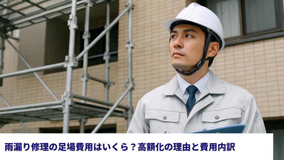 雨漏りしている場所や範囲によっては、建物全体に大きな足場を組むのではなく、部分的な足場で対応できたり、ロープアクセス工法(無足場工法)という特殊な技術で修理できたりする場合もあります。ただし、これらを選択する際は安全性や作業の確実性に注意が必要です。
